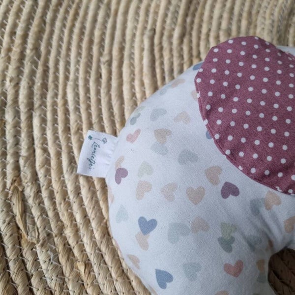 Deze schattige handgemaakte knuffel olifant, met een hartje stof en roze oortjes, van Leonietje's is perfect voor kinderen van alle leeftijden. De olifant heeft een hartje stof en knisperende roze stof oren voor extra speelplezier. Met een compacte afmeting van 17,5 x 16,5 cm is hij ideaal om mee te knuffelen of als sensorisch speeltje. De slurf is ideaal om vast gepakt te worden door kleine handjes.
