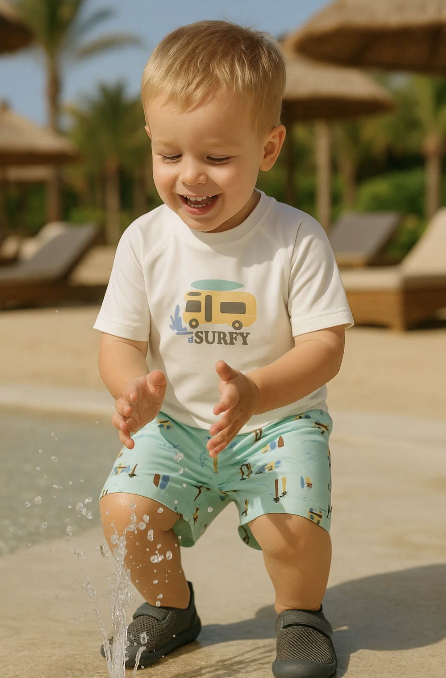 Lässig UV Zwembroek met Camperprint – Lichtblauw Sea Foam